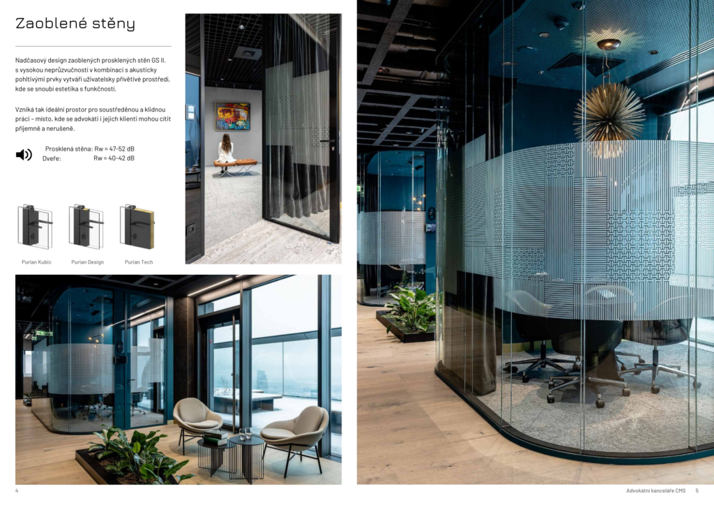 V brožurách najdete jak akustické prosklené stěny GS II., tak i jednoduché prosklené příčky GS I. Přehledně zde uvidíte jednotlivé varianty systémů i fotografie našich realizací, které ukazují, jak rozdílný charakter může sklo interiéru dodat.
