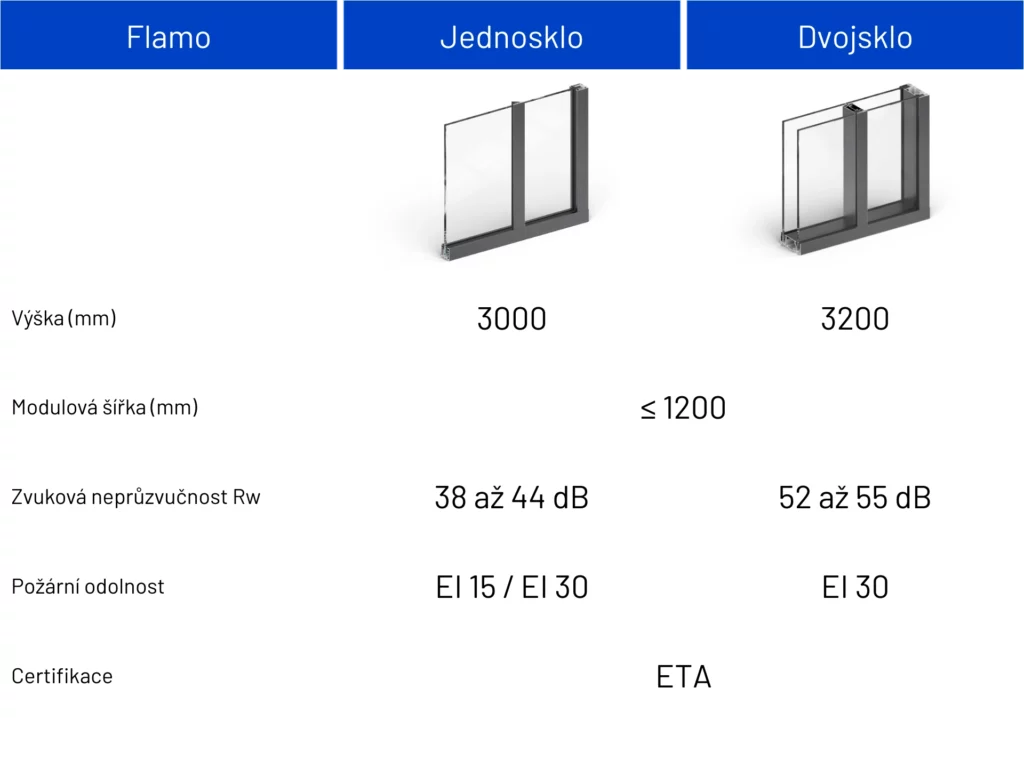 Na výběr je varianta s jednosklem i dvojsklem, podle specifikace projektu. Nehledě na svůj stylový design poskytují stěny ten nejvyšší akustický komfort a splňují přísné bezpečnostní normy.