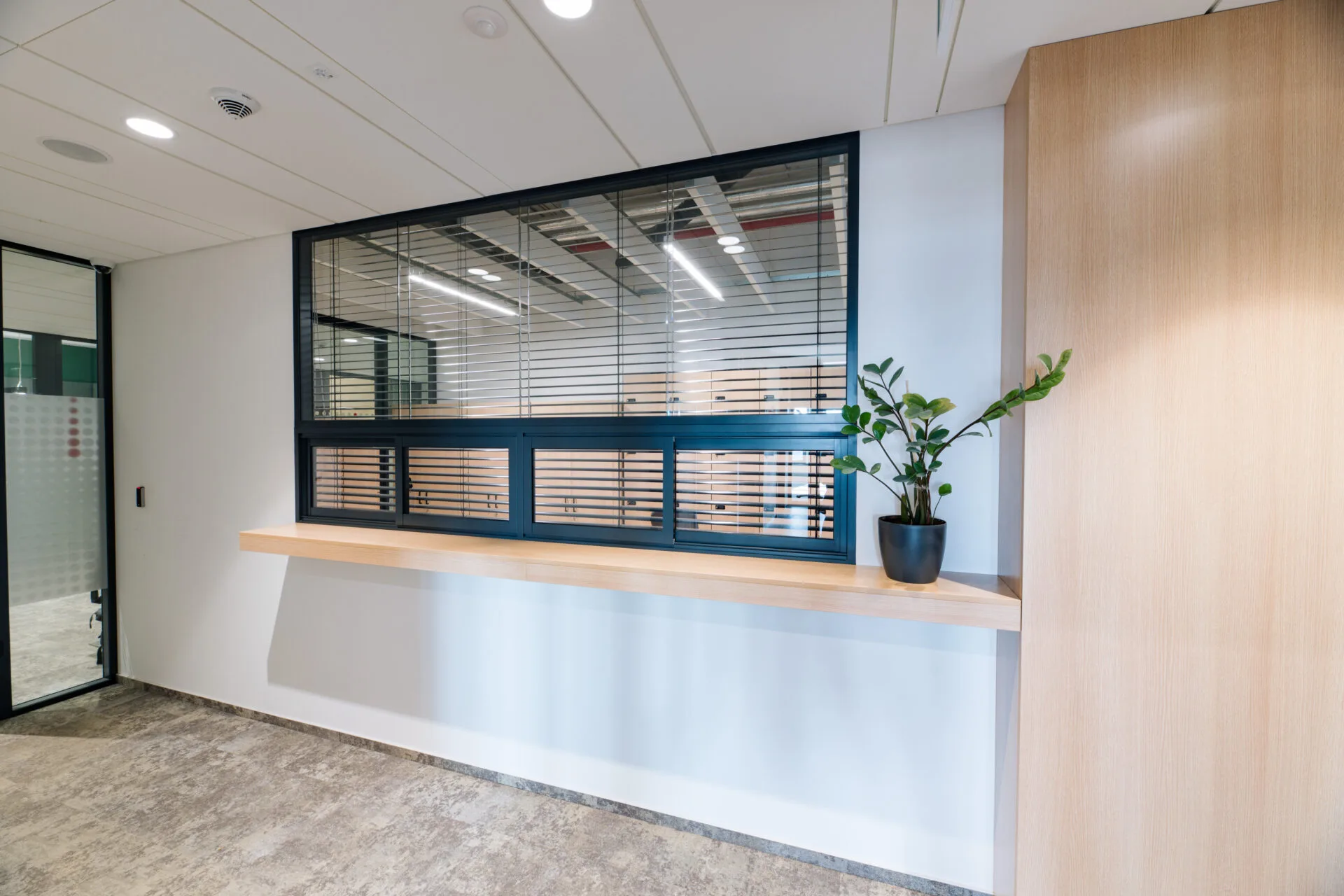 🔴 Posuvné okénko s meziskelními žaluziemi pro diskrétní komunikaci s klienty