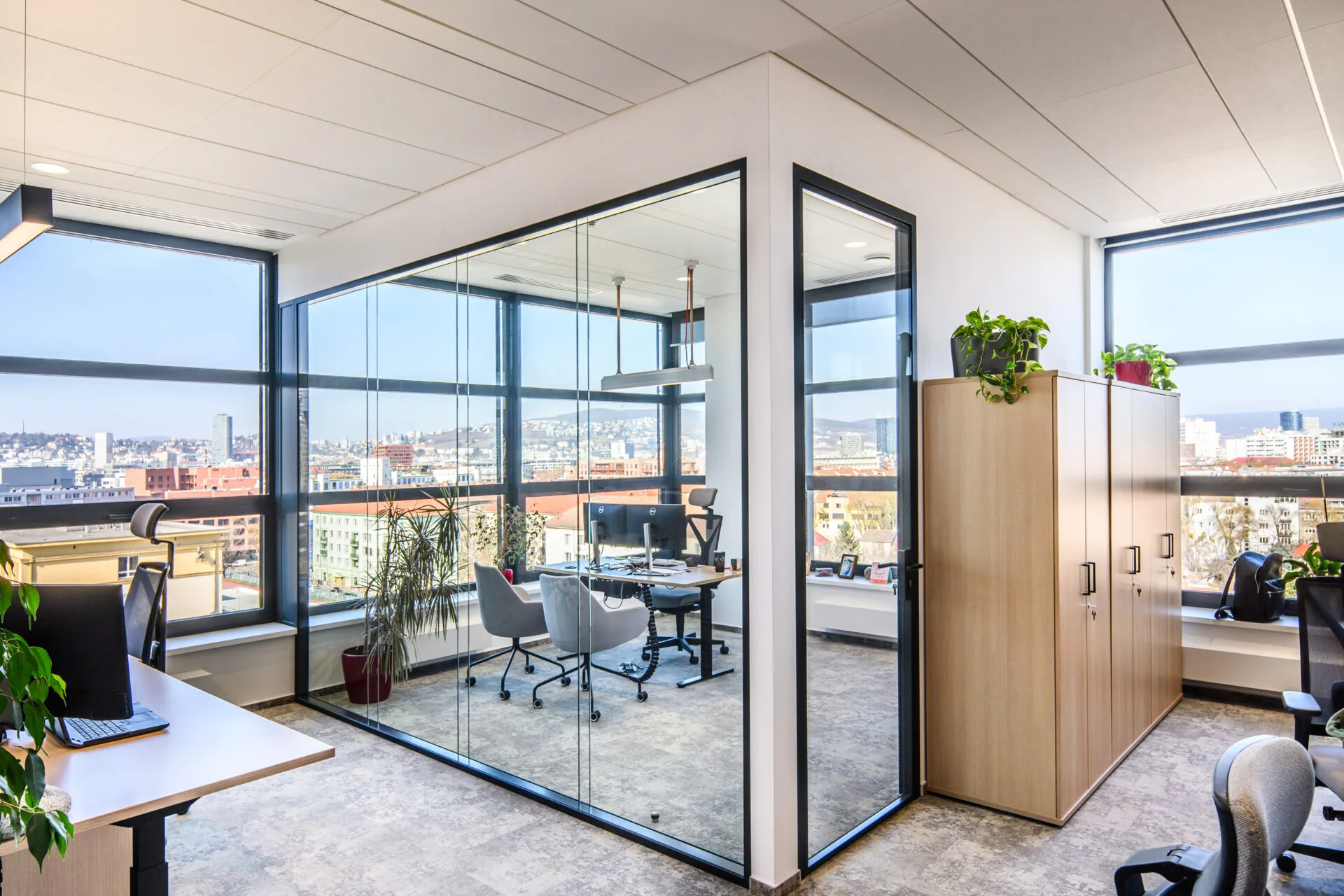 🔴 Výhled na celou Bratislavu – díky proskleným stěnám dokonce i skrz manažerskou rohovou kancelář
