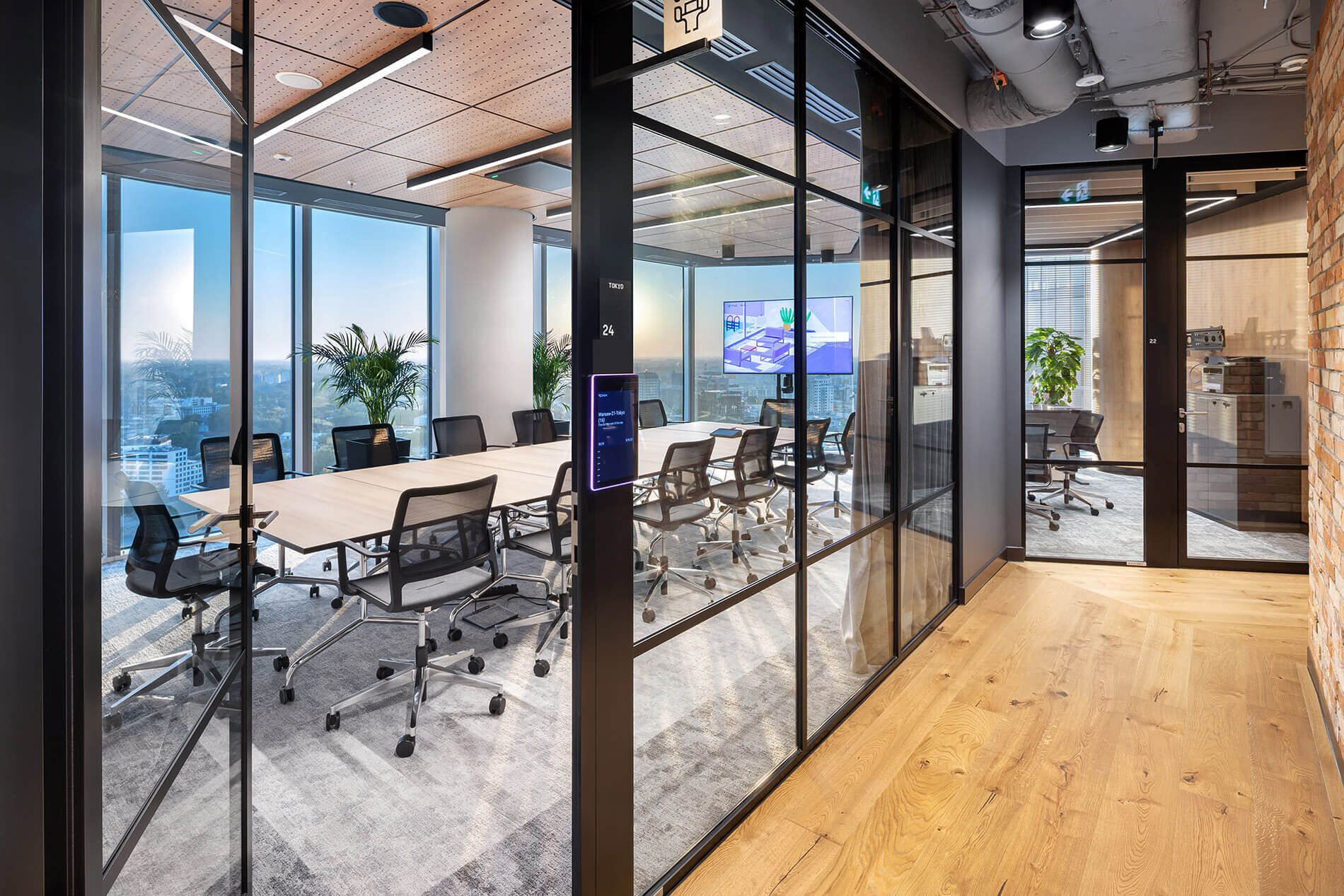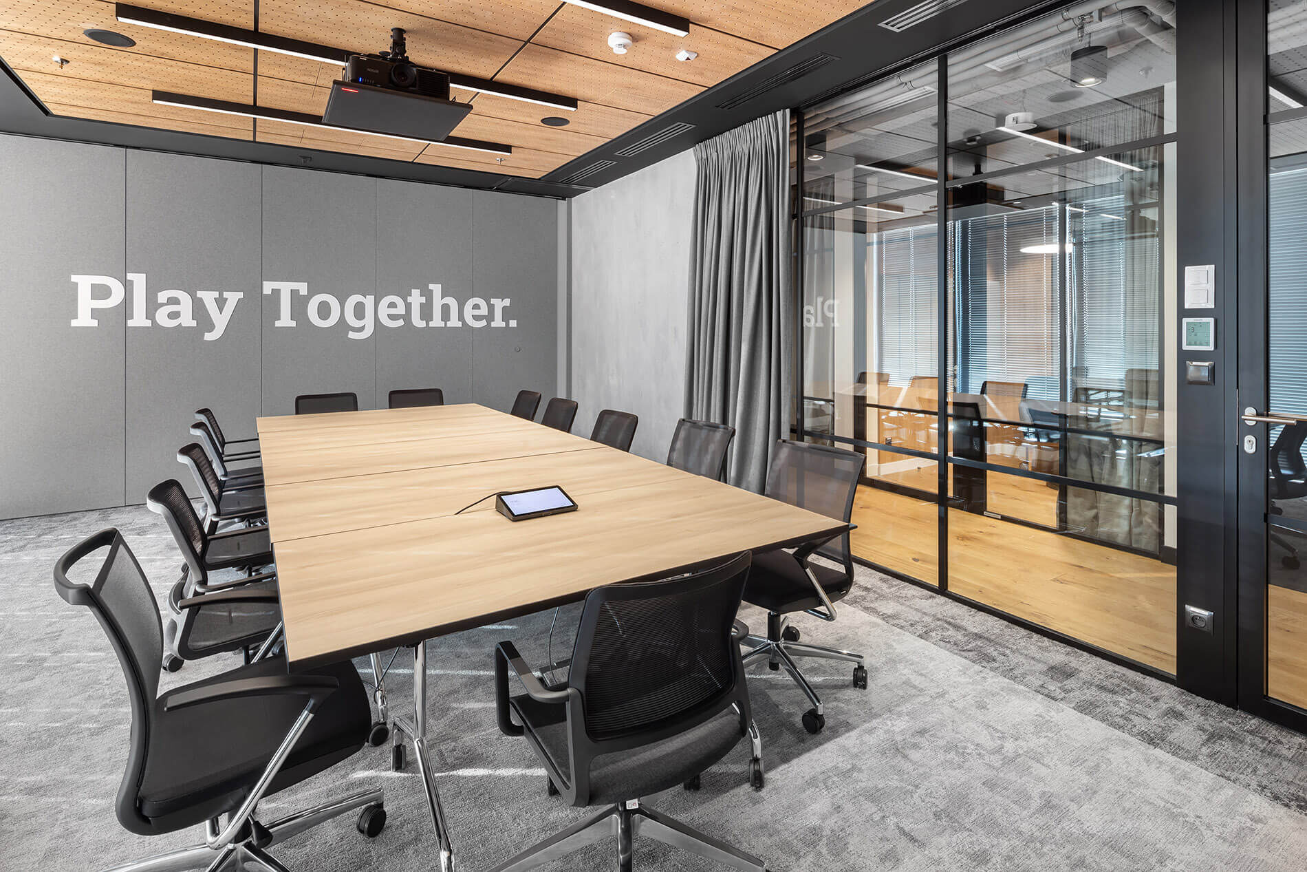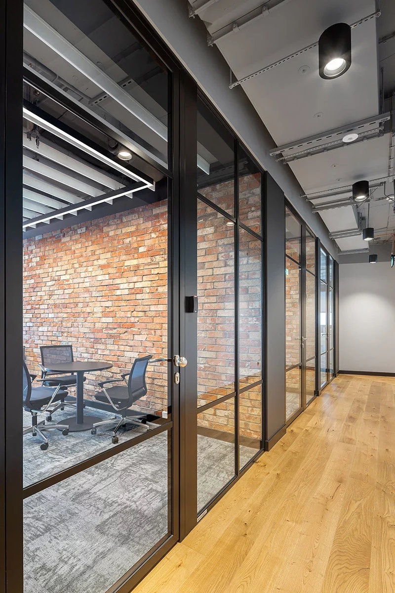 Kanceláře Huuuge Games jsou navrženy v loftovém stylu a nabízejí příjemné a pohodlné prostředí pro zaměstnance i jejich klienty a spolupracovníky. Prosklené příčky GS I. Grid s mřížkovým designem skvěle doplňují industriální charakter prostoru.
