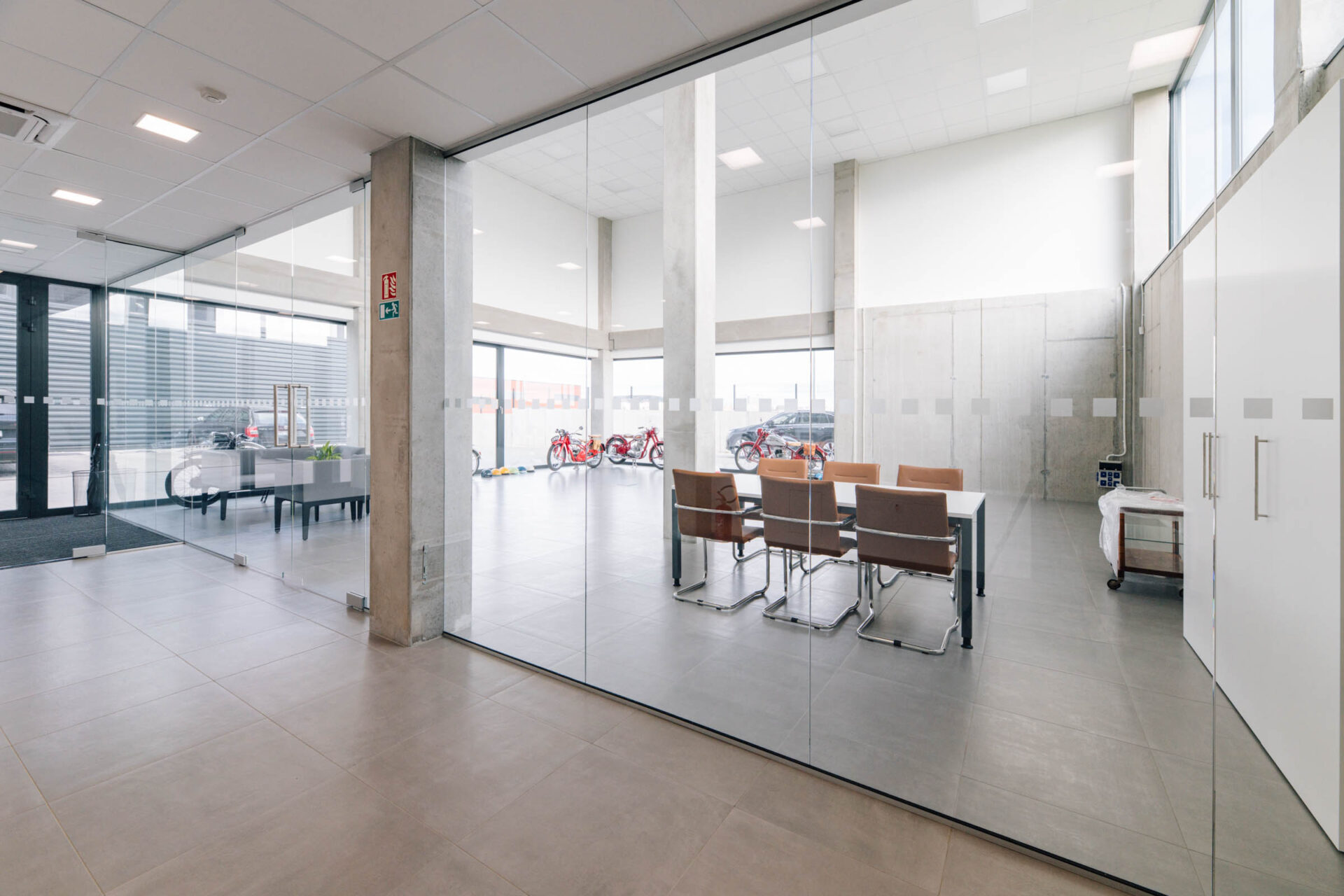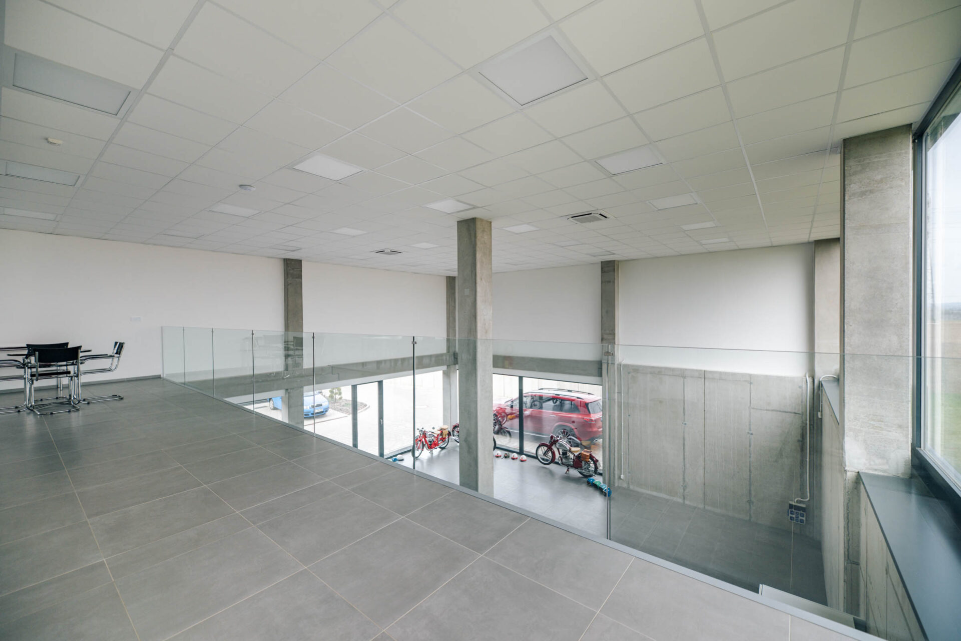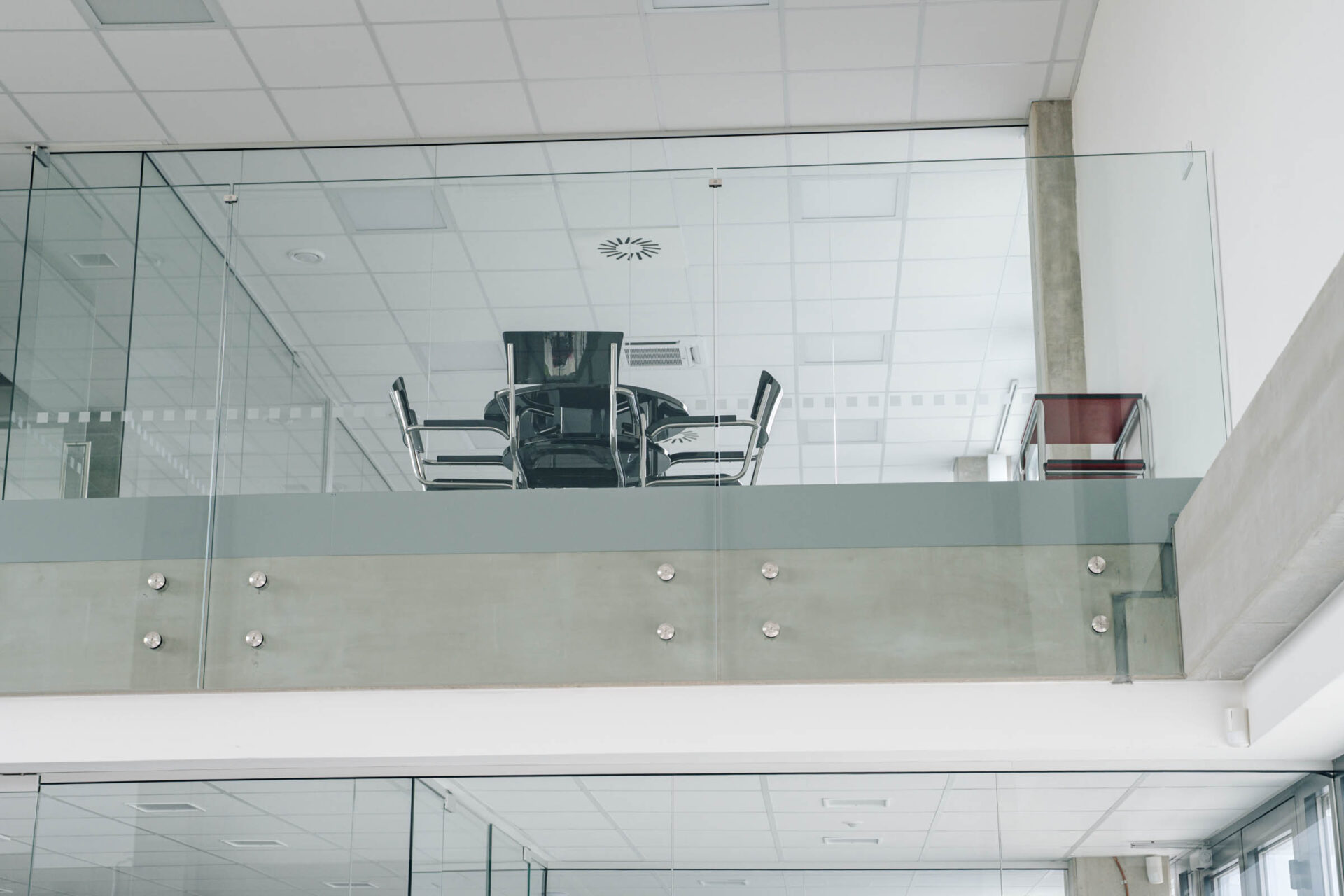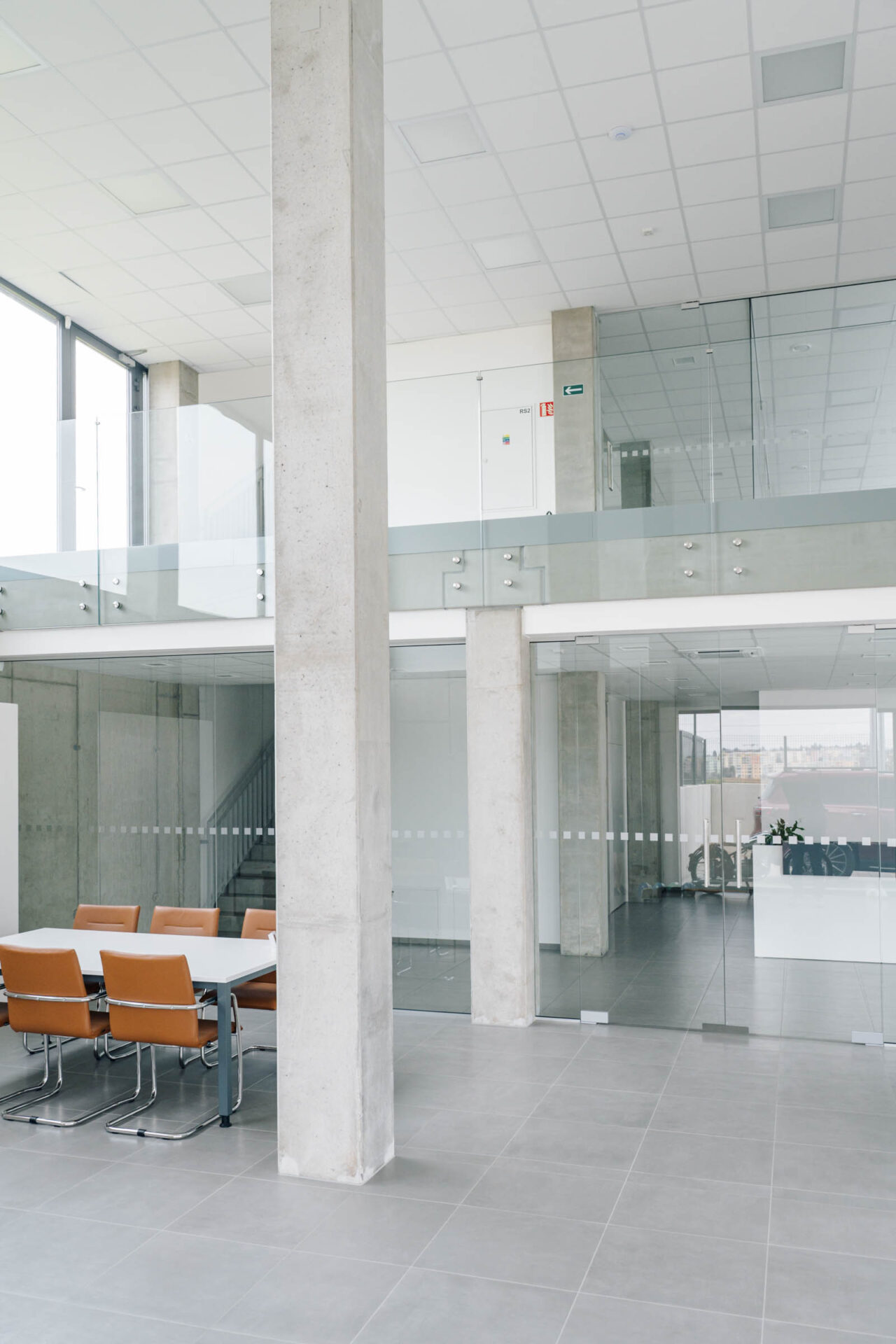 Ve společnosti UniCab jsme realizovali jednoduché příčky a prosklené zábradlí, které podtrhují čistý design celého prostoru.