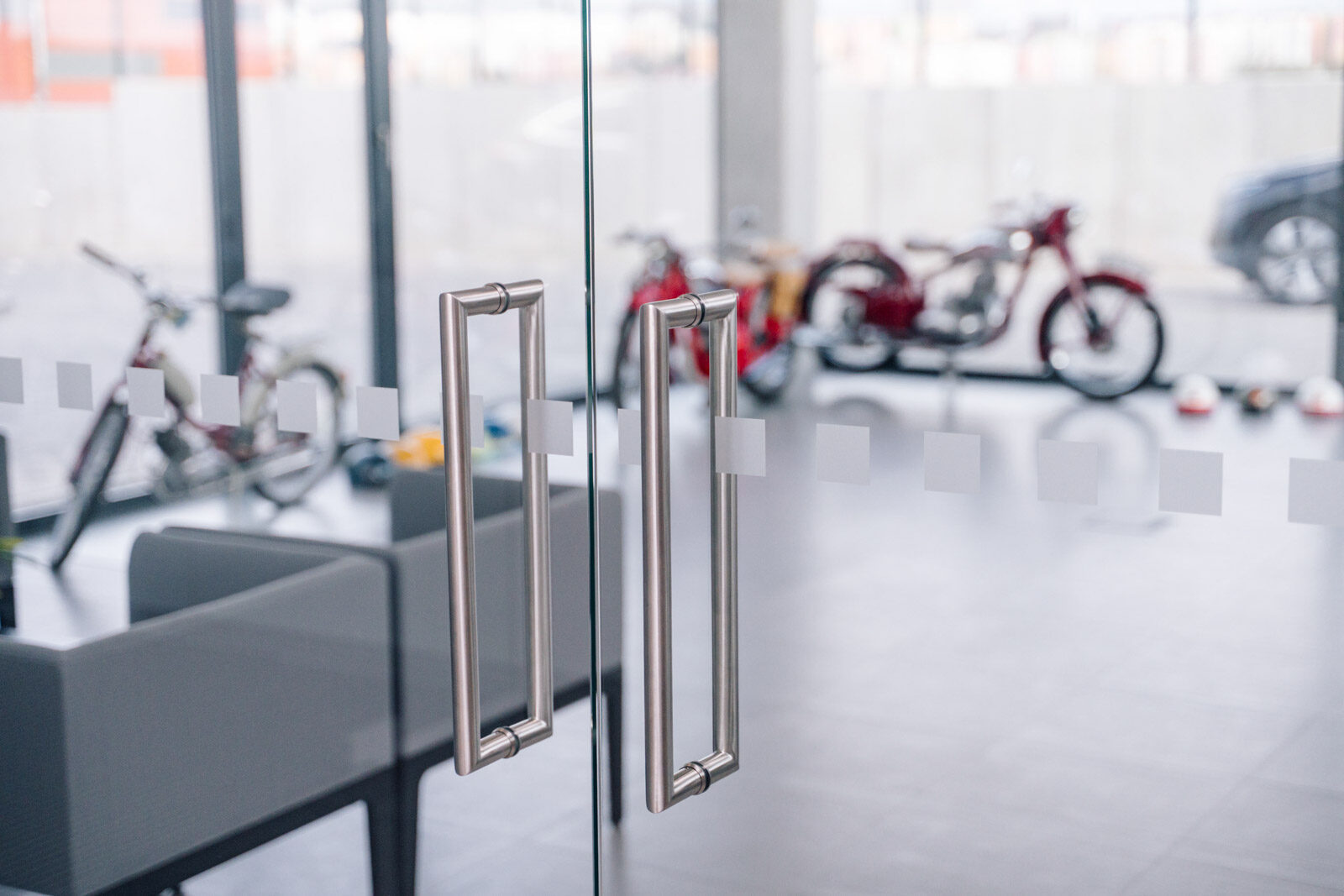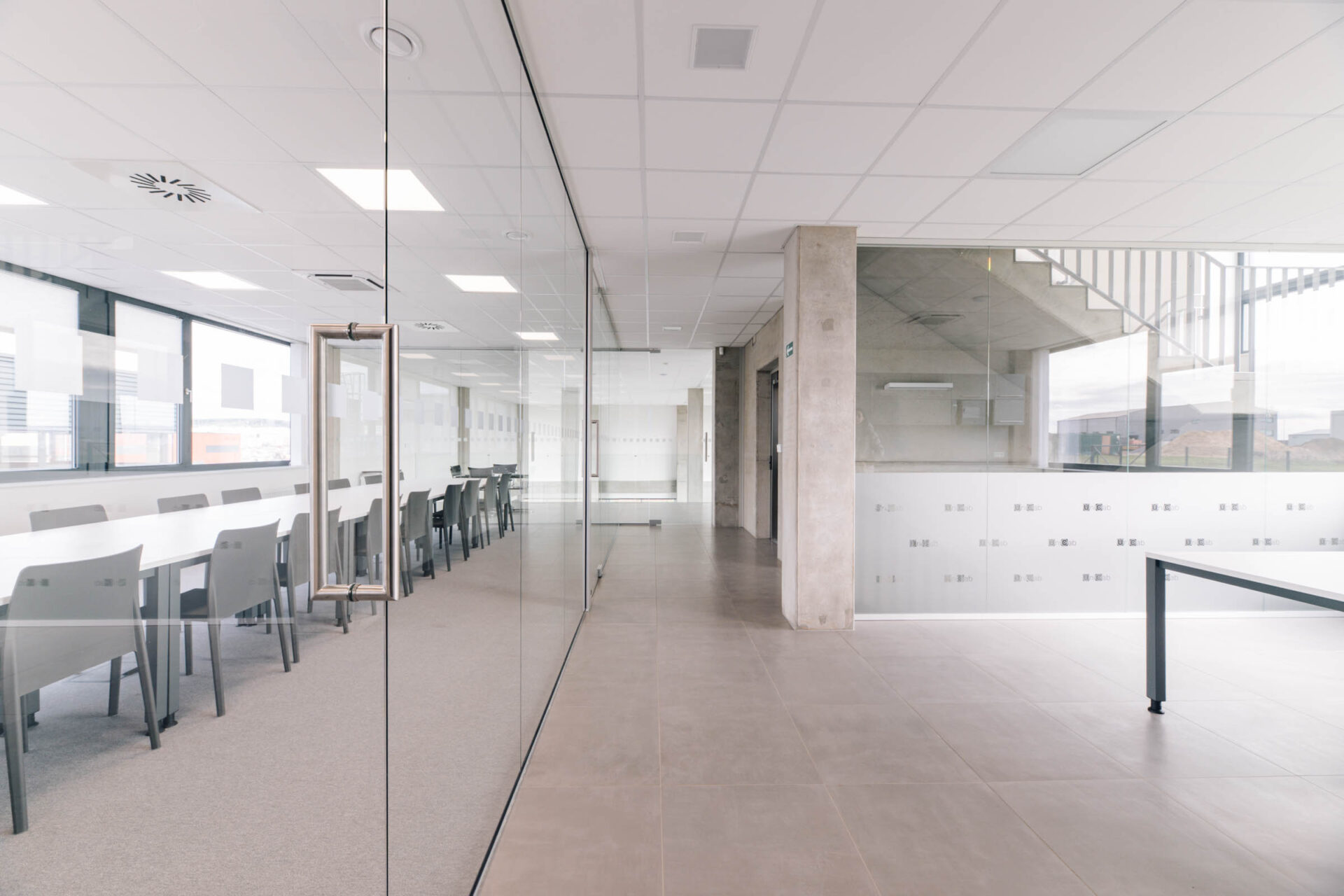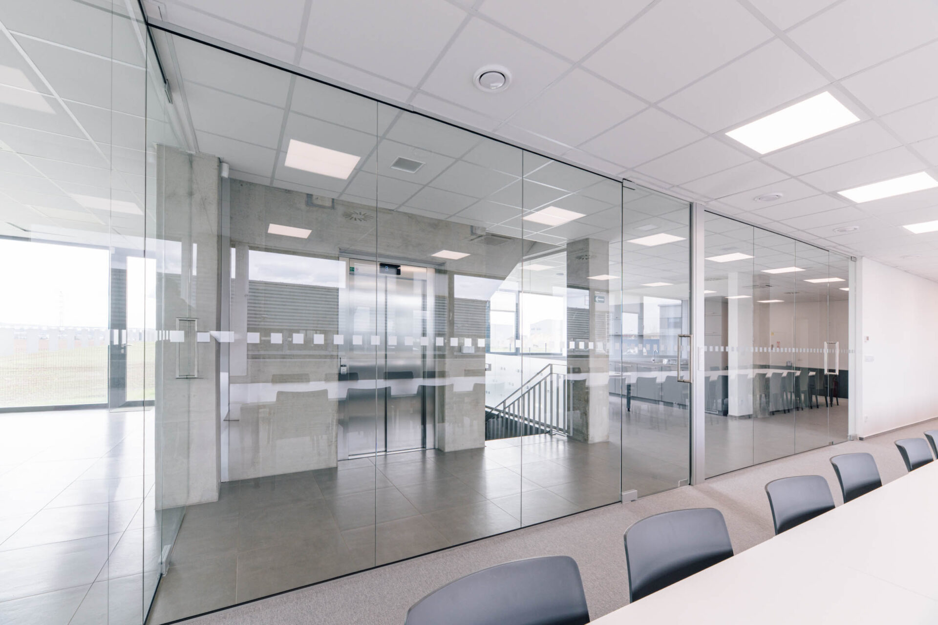 ▪️ Prosklené stěny oddělující schodiště