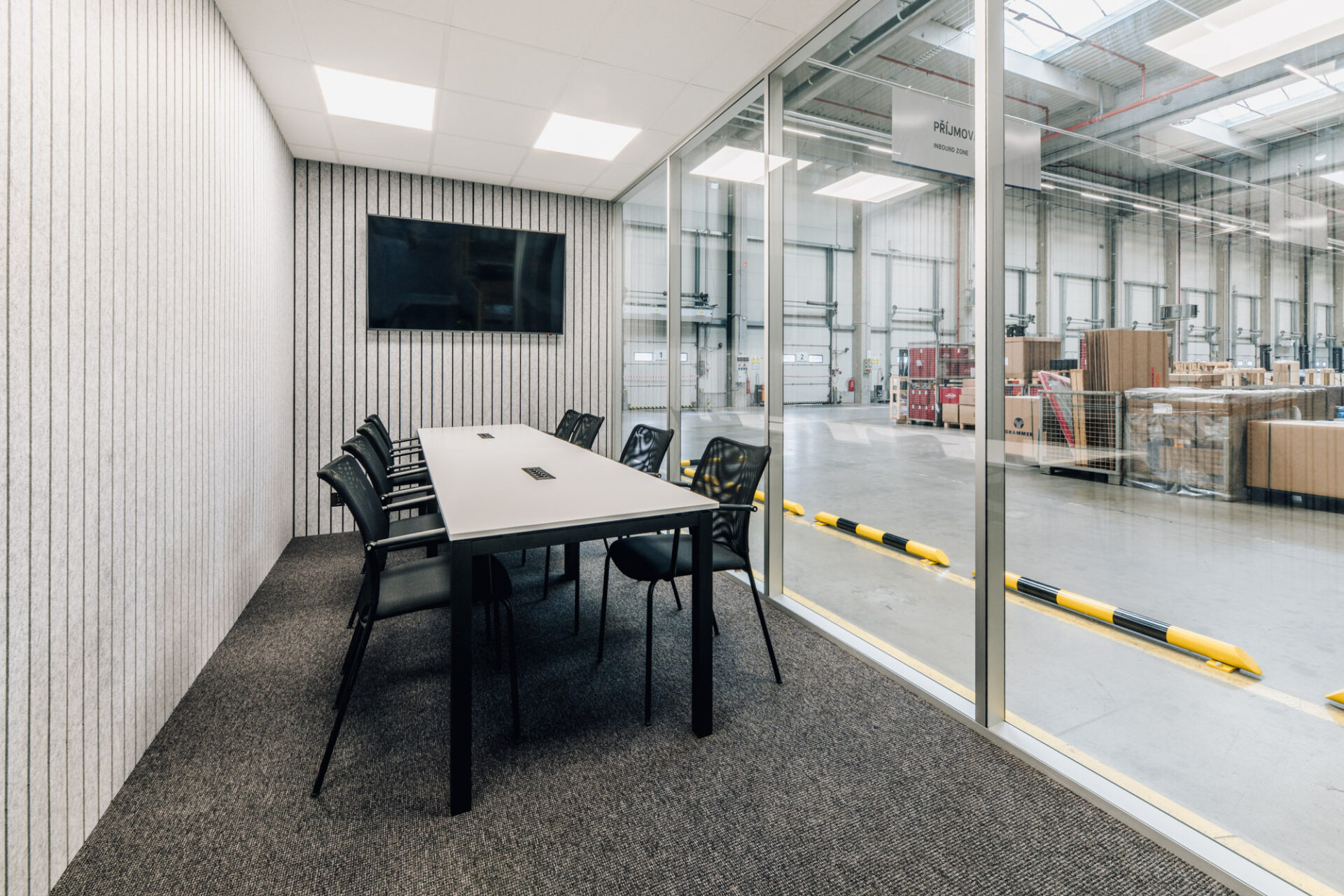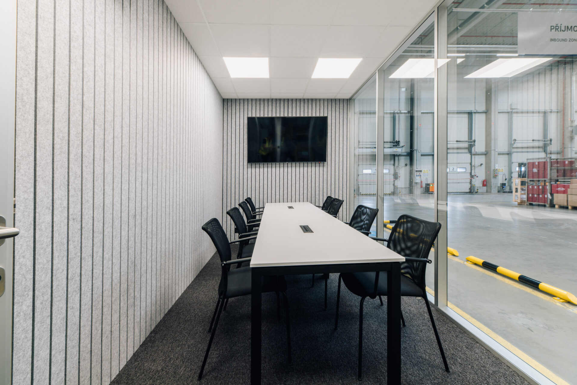 V hale společnosti Urban Transporte jsme realizovali designovou vestavbu s akustickými panely a elegantními hliníkovými profily.