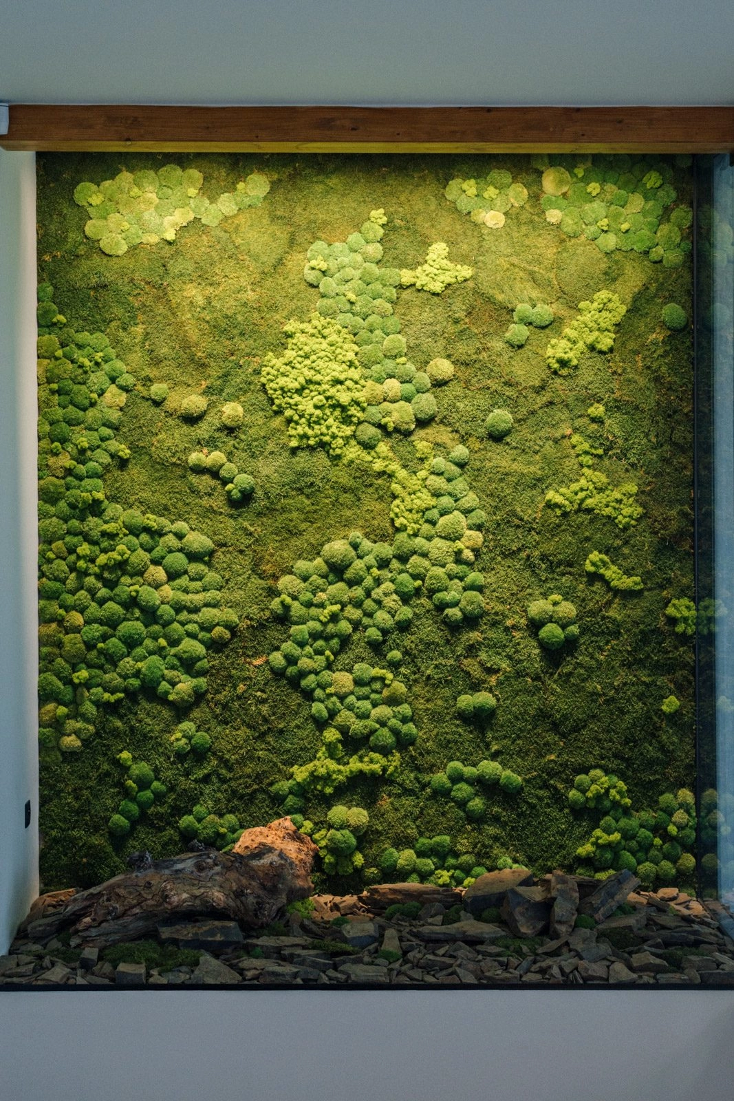🌿 V hlavní roli je tu naše mechová stěna ze švédského mechu, která přináší do interiéru svěží zeleň a klid.
