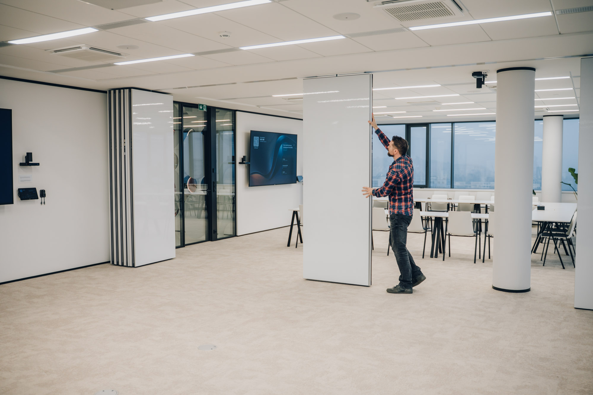 Neoddeliteľnou súčasťou projektu novej budovy Notina je posuvná plná stena Palace, ktorá bola nainštalovaná na najvyššom poschodí budovy. Toto riešenie umožňuje variabilné využitie priestoru, kde sa dá v priebehu niekoľkých okamihov vytvoriť otvorený rokovací priestor alebo samostatná konferenčná miestnosť s dokonalou akustikou.