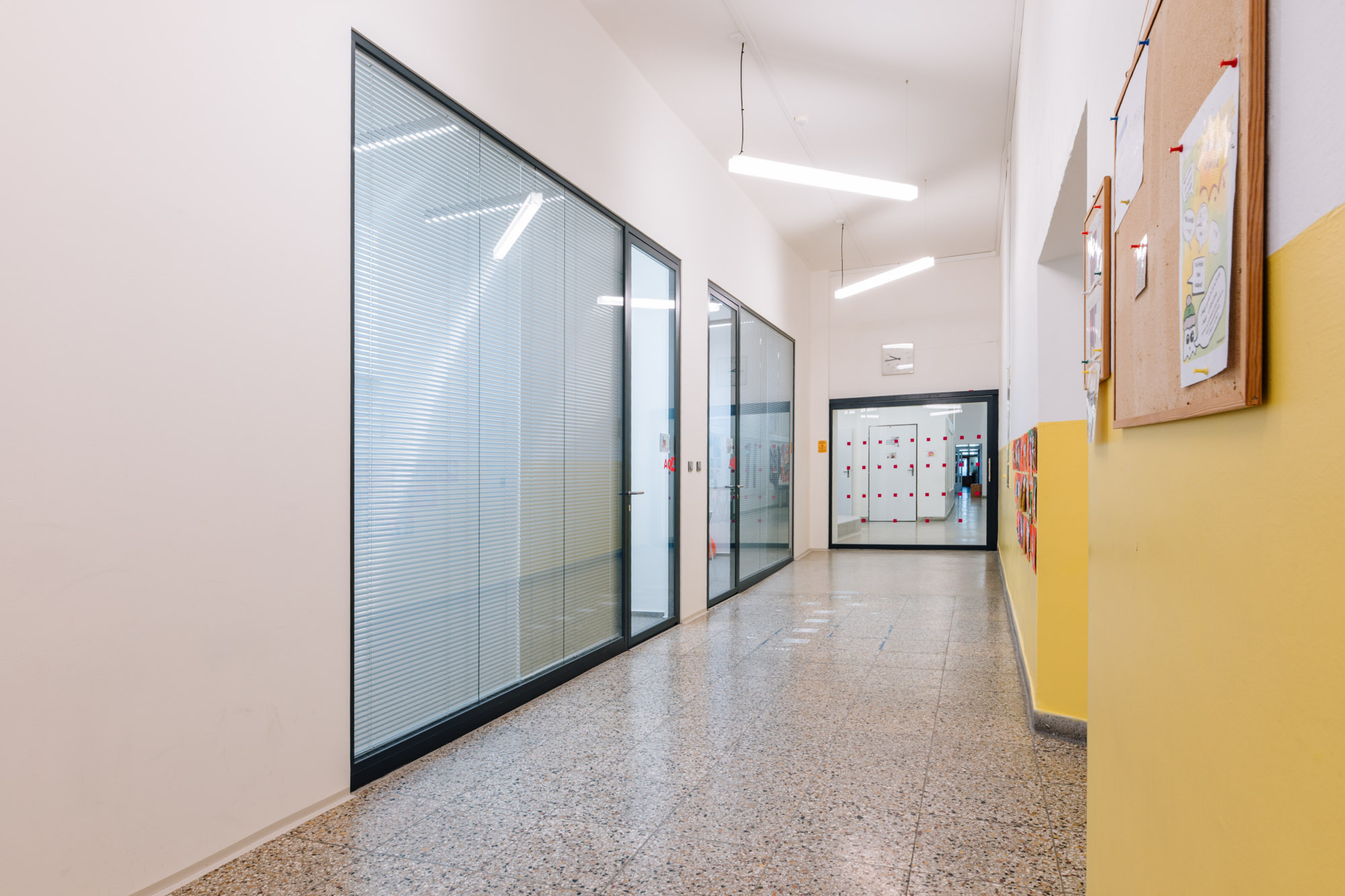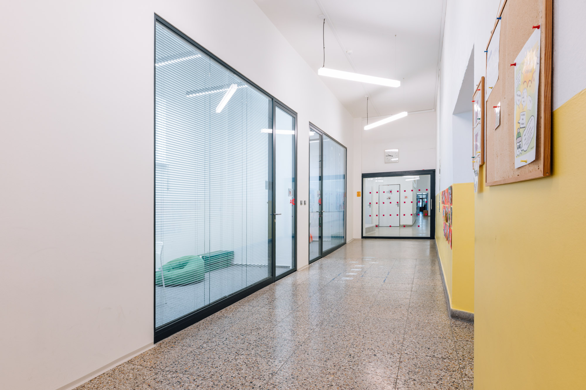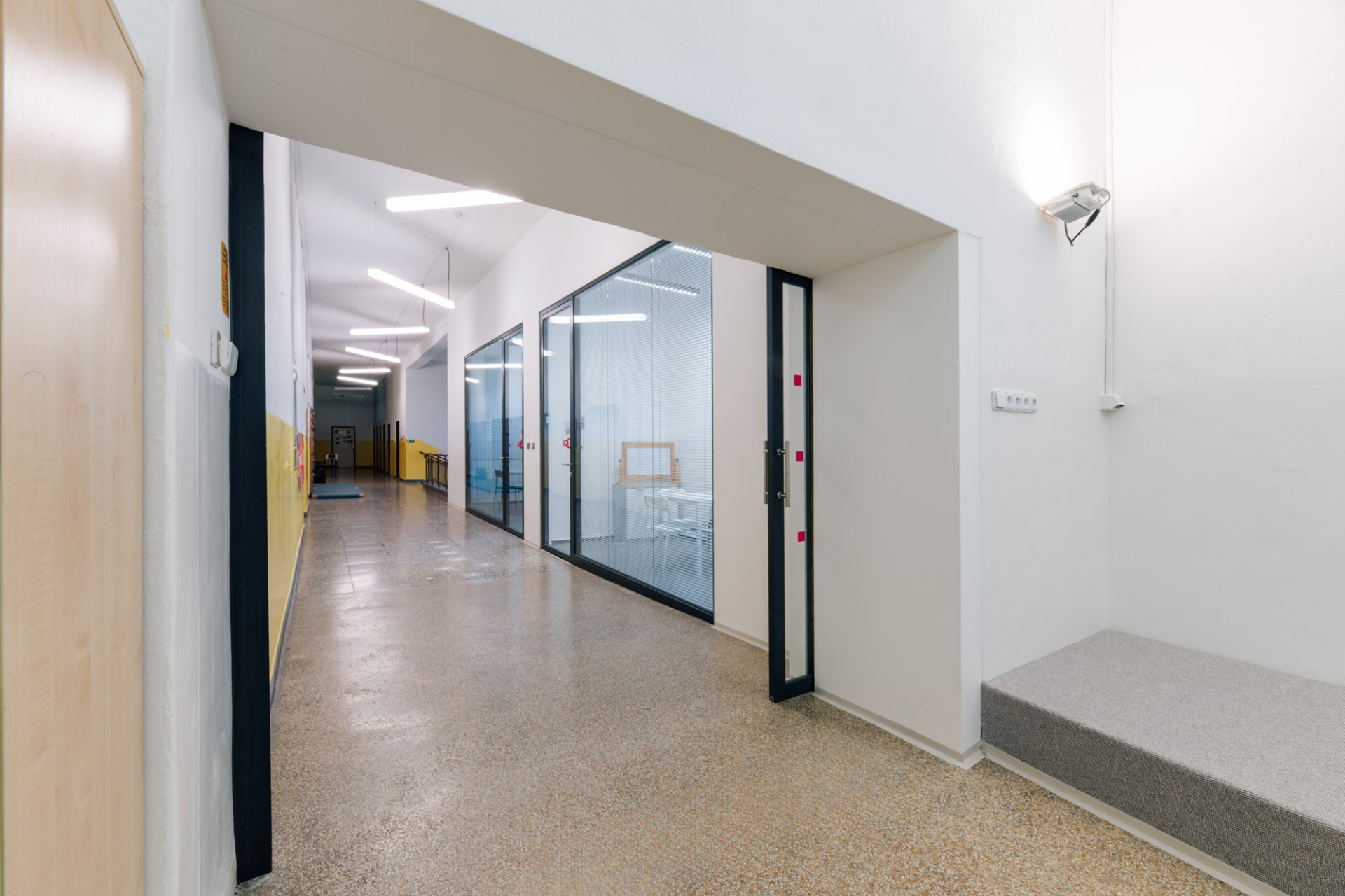 Pomocou akustických sklenených priečok sme vytvorili moderné učebne pre malé skupiny - ideálne na výučbu jazykov, individuálnu prácu a vzdelávanie detí so špeciálnymi potrebami.